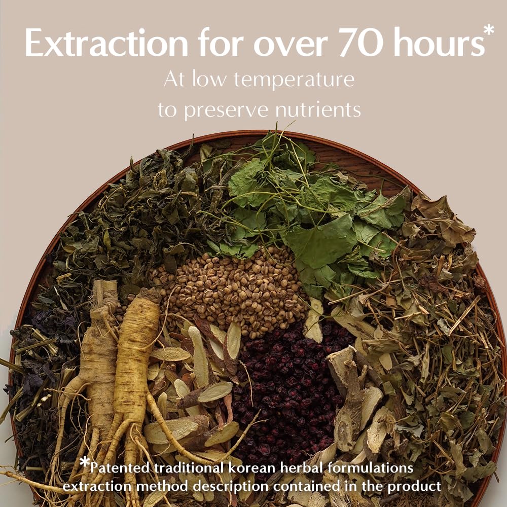 The herbal formulation that has been granted a Korean patent has undergone a total of 3 stages of meticulous extraction: Stage 1: Blending precious natural ingredients in unique proportions. Stage 2: Extracting for over 70 hours at low temperatures to minimize nutrient loss due to heat during the extraction process and carefully preserve nutrients. Stage 3: Adopting a high-pressure preservation method instead of heat treatment to minimize damage to the ingredients, ensuring effectiveness down to the last drop.